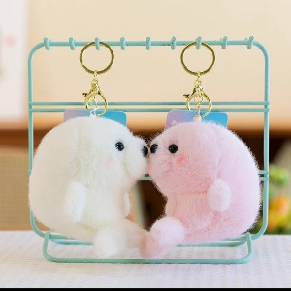 Llavero peluche Foca bebe kawaii blanca 12x10cm