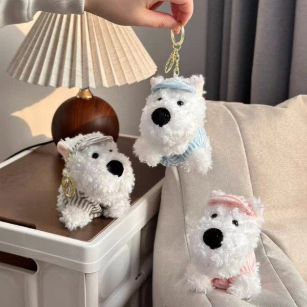 Llavero peluche perrito kawaii con ropita 13x9 cm