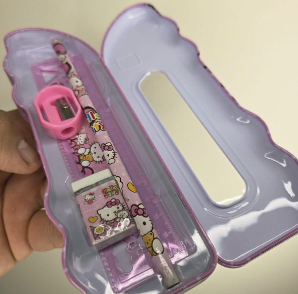 Cartuchera Hello Kitty tren con accesorios lapiz sacapuntas goma relga