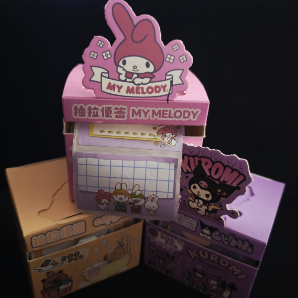 se puede elegir entre los diferentes motivos My Melody , Kuromi y Capibara 5 unidades