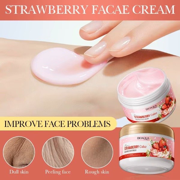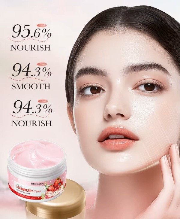 La crema facial "Strawberry Cake Nourish Face Cream" de BIOAQUA es una crema hidratante y nutritiva.
