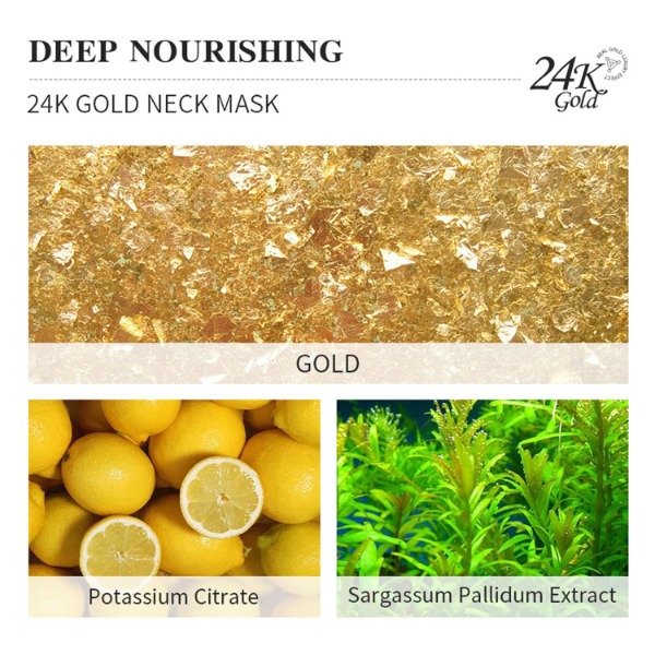 La mascarilla para el cuello de oro de 24K tiene los siguientes:
